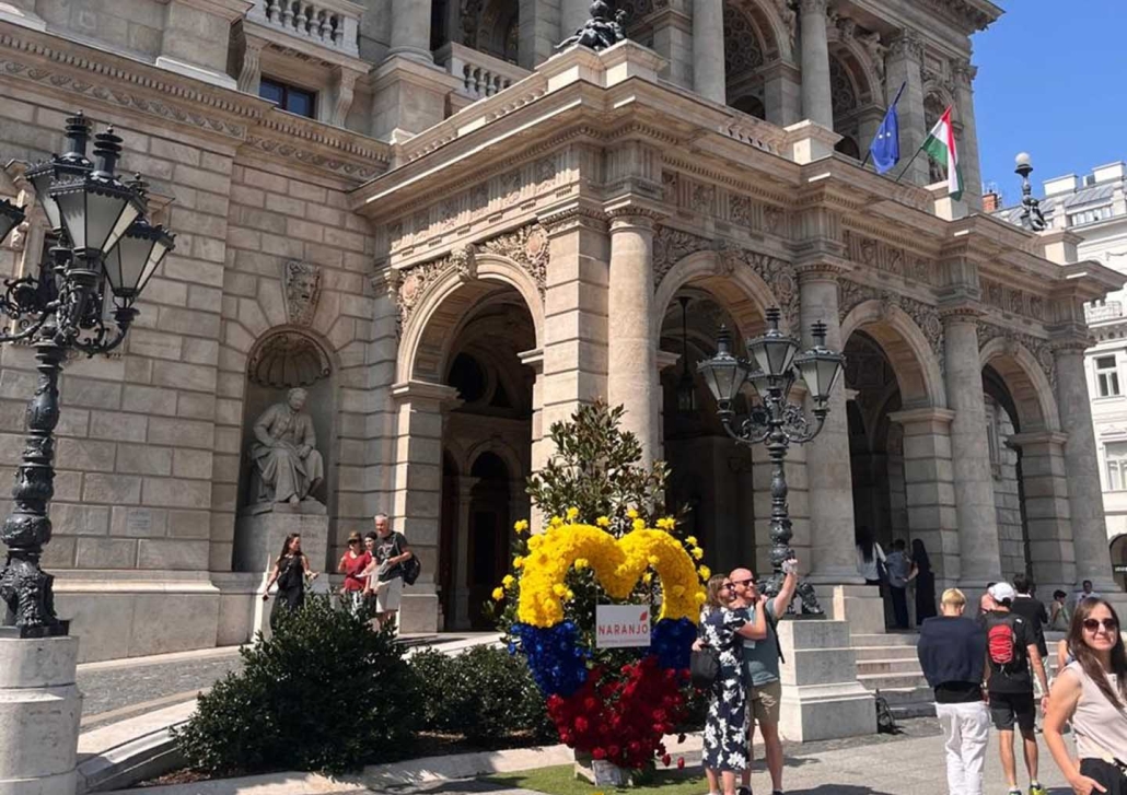 On August 8, 2025, the floral heart bloomed once more — this time in Budapest, in front of the majestic Hungarian State Opera House, as part of the celebration for Ecuador’s National Day and the First Cry of Independence.